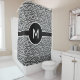 El cuarto de baño es único con esta cortina de ducha monogramada con una huella geométrica audaz y moderna de hexágonos en blanco, negro y gris.