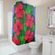 Diseño Peach Hibiscus & Monstera de Rockett Graphics. El color de fondo de esta cortina de ducha es el personalizable. :D