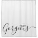 Esta cortina de ducha presenta un texto moderno y magnífico de color negro sobre fondo blanco.