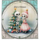 Huesos, baubles y un poco de magia - el espectáculo de los Navidades esqueletos. El esqueleto delantero lleva un vestido rosa lúdico y un sombrero de Santa Claus clásico, que le confieren a la imagen un toque alegre e inusual. Tiene un pequeño adorno brillante, listo para decorar el árbol. El segundo esqueleto se alza junto al árbol, sosteniendo también un adorno, que se aferra con cariño para complementar la decoración festiva. El árbol de Navidad está lujosamente decorado con adornos coloridos de diferentes colores y formas, lo que le da un aspecto animado y alegre.