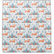 Un súper lindo patrón de zorros con montañas estilizadas, pinos y flores de boho. En tonos naranjas, dorados, marrones, azules, grises, rojos, verde azulados y blancos.