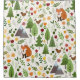 Ilustraciones escandinavos de la naturaleza del estilo del arte popular (arbolado; fox, las hojas, los árboles, las flores, las montañas y los pájaros) en un diseño superficial del modelo en un fondo ligero del color crema.