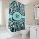 Cortina De Ducha Impresión de cebra monogramada negro y turquesa Ve