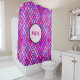 Un patrón geométrico de los diamantes en colores brillantes y ricos de joyas azul zafiro, rojo rubí y rosa hacen que esta cortina de ducha sea imprescindible. Personalice su nombre o monograma en un círculo de colores complementarios.