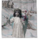 Una postal de Navidades franceses de dominio público. Presenta a un chica vestido de ángel Navidad que lleva regalos.