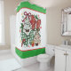 A Fashionable And Colorful Red And Green Christmas Shower Curtain With A Double Green Border With Coquette Bows And Christmas Trees