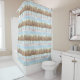 Un paisaje acuático de una cabaña en el bosque para escapar del lago adorna esta cortina de ducha.