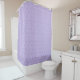 Cortina de ducha geométrica de bonito con un sencillo patrón de flores lavanda, púrpura y lila.