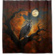 Un gran búho de cuerno en un árbol en otoño bajo la luz de una luna llena.