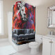 Esta cortina de ducha tiene un diseño de león.