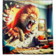 Esta cortina de ducha tiene una foto genial de un león enojado que choca contra una pared.