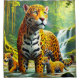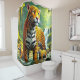 Esta cortina de ducha tiene un arte leopardo.