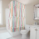 Esta cortina de ducha tiene un diseño moderno de mediados de siglo de repetición de rectángulos en verde azulado, naranja, remolacha y naranja sobre un campo de blanco. Si te gusta el diseño pero prefieres colores diferentes, envíame un mensaje.