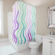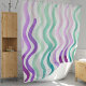 Cortina De Ducha Líneas de acuarela violeta y verde onduladas