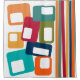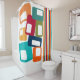 Esta cortina de ducha tiene un diseño moderno de mediados de siglo de líneas y rectángulos en tonos retro de naranja, oro, arándanos, verde azulado, verde, azul, turquesa y verde.