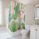 Cortina De Ducha Llamas acuarelas y patrones de cactus.