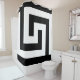 Haga una declaración audaz en su moderno cuarto de baño utilizando el clásico de la clave griega del mundo antiguo que nunca quedará fuera de moda. Llave griega en blanco negro simple y moderna cortina de ducha.