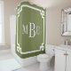 Cortina De Ducha Llave verde oliva y griega blanca | Monogramado