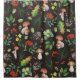 Esta cortina de ducha tiene un fondo oscuro y está decorada con un estilo vibrante de inspiración natural. El diseño presenta varios elementos como hongos, hojas, bellotas, pineconas, bayas y flores. Las setas están representadas en diferentes formas y tamaños, algunas con gorras rojas y otras marrones. Las hojas se presentan en varios tonos de verde, acompañadas de flores amarillas y racimos de bayas rojas esparcidos por todo el patrón. La decoración del cuarto de baño es de estilo clásico y austero, con un toque natural.