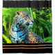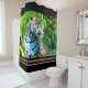 Con esta cortina de ducha de jaguar se añade un poco de intimidad a la decoración de los baños. Este gran y hermoso gato salvaje, llamado Nayla, quiere ayudar a traer la naturaleza adentro. Los jaguares son el tercer gato grande más grande, junto a los leones y los tigres. Esta imagen se basa en una foto original con efectos digitales aplicados.