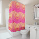 Resumen de la cortina de ducha con patrón de mandala en un gradiente satinado de discos superpuestos centrados alrededor de una rueda de estrellas - tonos de fucsia rosa, coral y melocotón