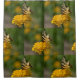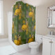 Esta cortina de ducha tiene una imagen suave y onírica de un néctar de mariposa de cola de torso de una zinnia amarilla.
