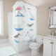 Obra de arte original de un ibis blanco, un Spoonbill rosado, piernas amarillentas mayores, piernas amarillentas menores, gran almidonado y codicia de nieve en una cortina de ducha de Sally Siko.
