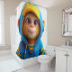 Esta cortina de ducha tiene un mono lindo.