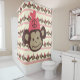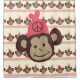 Una bonita cortina rosa, blanca, marrón y marrón con muchos monos bonitos con gorras rosas y símbolos de paz.