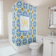 Cortina De Ducha Monograma azul amarillo mediterráneo