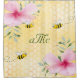 Cortina De Ducha Monograma floral rosado de abejas amarillas