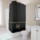 El elegante diseño clásico del cuarto de baño de lujo con monograma en negro y dorado. La plantilla se ha configurado para que sólo tenga que agregar su nombre para completar el diseño. Accesorios similares en la tienda.