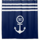 Cortina De Ducha Monograma Personalizado de franjas de anclaje azul