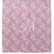Monograma con cortina de ducha floral de estilo chinoiserie rosa y azul bonito con una inicial. Flores acuáticas elegantes y clásicas.