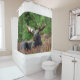 Cortina de ducha de alce. Magnífica foto de un majestuoso alce reclinándose en un campo de flores silvestres. Foto de Shivam Kumar.