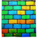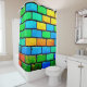 Esta cortina de ducha artística tiene un diseño colorido de pared de ladrillo.