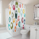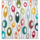 Esta cortina de ducha tiene un diseño moderno de avales de colores retro en líneas negras curvadas.