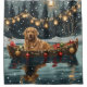 Podrá navegar por la magia de la temporada de vacaciones con este bonito ilustracion, que muestra a un orgulloso perro sentado en un barco decorado con gusto, deslizándose a través de un tranquilo lago de Navidades. Las luces de los pinos cercanos reflejan el agua, lo que aporta un resplandor cálido y festivo que realza el ambiente acogedor. Los adornos se deslizan por los lados del barco, mientras que los farolillos brillan por el camino, creando una escena que capta la verdadera esencia del calor y la alegría de los Navidades. Esta obra de arte nostálgica aporta un toque de magia navideña a cualquier espacio, perfecto para los que aprecian el espíritu de la temporada.