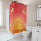 Con un acento muy interesante y útil para el cuarto de baño, esta cortina de ducha adornada con un gradiente rojo y dorado y un hermoso sol está revalorizado con estrellas doradas y lunas colgando del cielo. El tipo de letra de la bonito dice: "Feliz y brillante". Estas tres líneas pueden ser cambiadas para leer lo que quieras, de un dicho festivo a una frase motivacional, o las palabras pueden ser borradas por completo para un diseño de imagen solamente que puedas dejar todo el año.