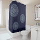 Una mandala de círculo concéntrico de color azul claro con puntos azules brillantes y de estrellas doradas esparcidos entre las capas hace que sea divertida, un diseño que recuerda a un cielo estrellado.