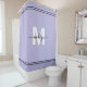 Cortina de ducha personalizada con elegante monograma en letra script de color morado claro y femenino. Esta chic cortina de ducha añade un toque lujoso a cualquier baño con un diseño de monograma personalizado sobre un suave fondo morado claro. Con una letra inicial blanca en negrita y un nombre en letra cursiva negra, el diseño está acentuado con dobles rayas blancas en la parte superior e inferior para un detalle refinado. Todos los colores son totalmente personalizables para que coincidan con tu estilo y decoración del baño. Perfecta para bodas, inauguraciones de casas o cumpleaños, esta cortina de ducha con monograma combina el estilo con la practicidad, añadiendo una elegancia atemporal a tu espacio.