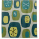 Este diseño artístico abstracto de la era atómica tiene formas oblongas en verde oliva, azul oscuro y azul acuático.