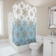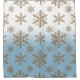 Copos de nieve dorados en un fondo azul oscuro y blanco.