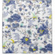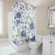 Cortina de ducha azul oriental con motivos florales y de pájaro.
