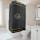 Un fondo negro decorado con franjas de oro falsas. Personalice y añada sus iniciales y nombre de pila para el monograma.