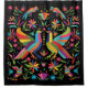 Impresión otomí mexicana con pájaros y flores en vivos colores vivos y vivos...en un fondo negro!