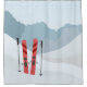 Resumen del paisaje invernal con vistas panorámicas a las montañas, equipo de esquí rojo, senderos y cielo azul