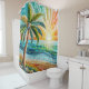 Cortina De Ducha Palm Tree Mosaic Tropical Beach Sunset