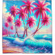 Esta cortina de ducha tiene un arte de palmera de bonito.