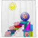 Cerdos coloridos y soleados niños cortina de ducha blanco